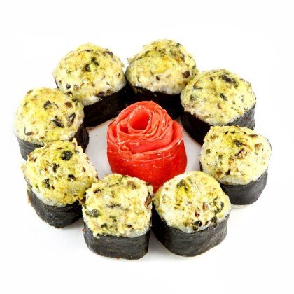 Угорь, авокадо, соус «Тобико», соус «Унаги», кунжут обжаренный