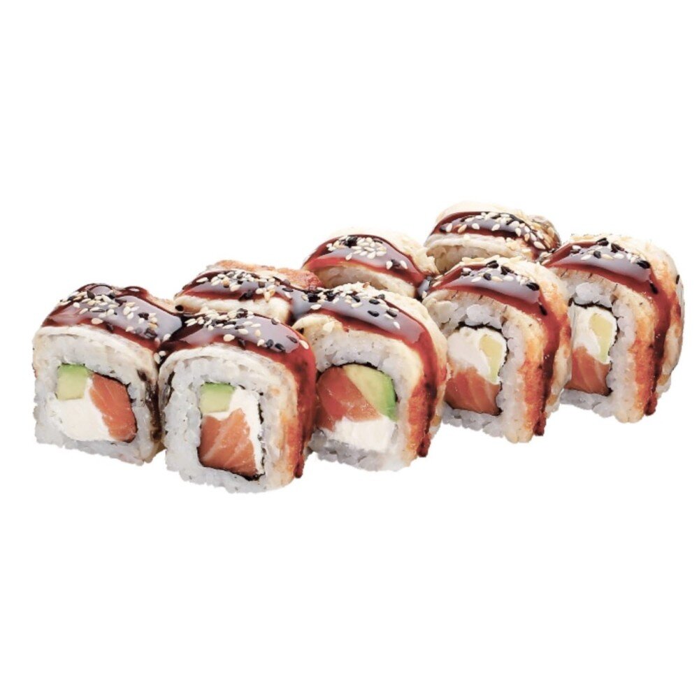 Сливочный сыр, лосось, авокадо, угорь, соус «Унаги», обжаренный кунжут
