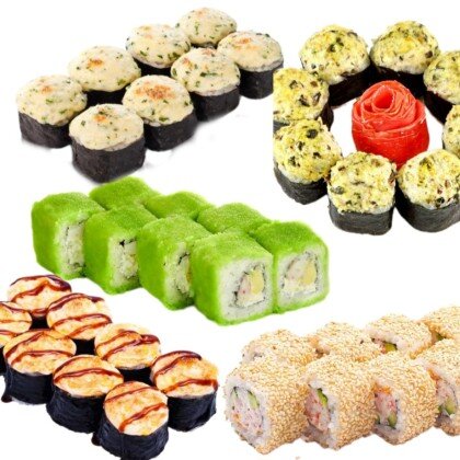 "Калифорния краб", "Инь-ян холодная", "Сердце самурая", "Шанхай", "Сакура". (40шт.)