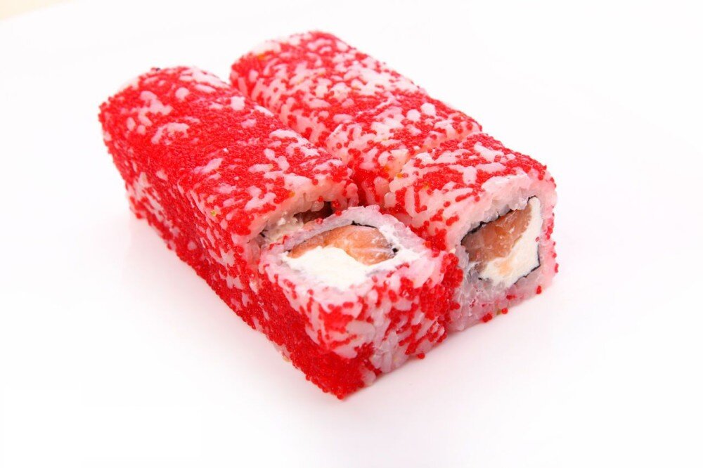 Сливочный сыр, лосось, икра «Тобико», обжаренный кунжут