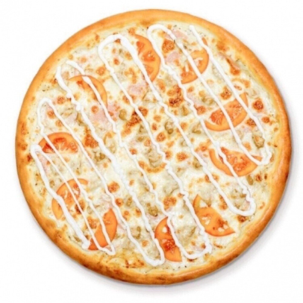 Итальянский соус, ветчина, свежие помидоры, сервелат, сыры "Российский", "Моцарелла"