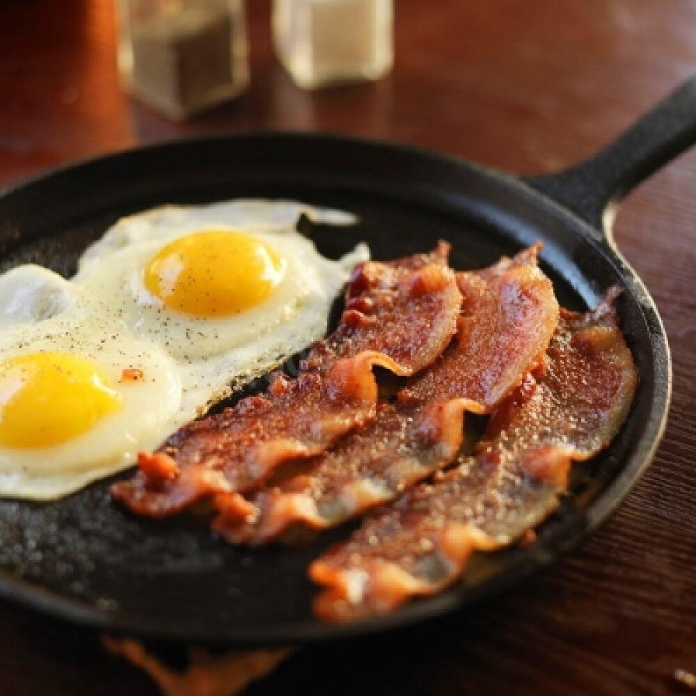 Глазунья с беконом и овощами