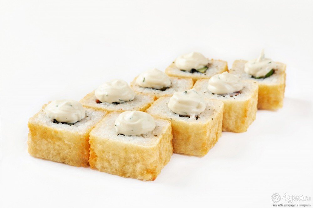 Рис, нори, курица копченная, лист салата, помидор, огурец, соус цезарь