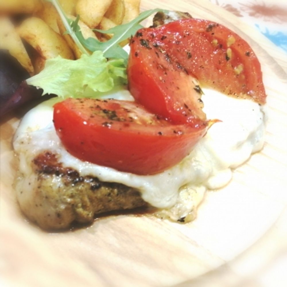 Свинина по-Русски с помидорами под сыром. Гарнир на выбор