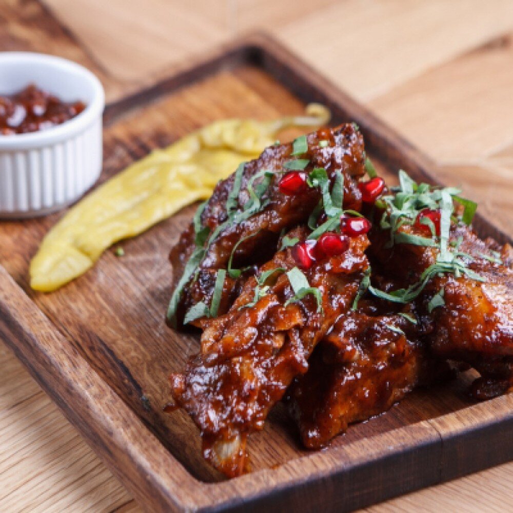 Свиные ребра в кисло-сладком медовом соусе. Гарнир на выбор